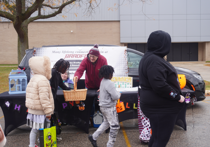 10/28/2025 (updated 10/29): KBHSAA participated in the Special Needs Trunk or Treat event held in the Bradford High School parking lot on Sat., Oct. 25 from 12:30-2:30PM, with Randy '73 and Jan '74 Vaccaro working the event. We used the candy leftover from our booth at the Bradford Homecoming Tailgate event on Oct. 10, augmented with a few additional bags of goodies. The night before, we put together 450 bags of candy to pass out to the trick-or-treaters.