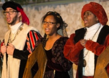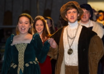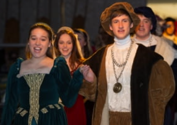 The 2025 production of Ye Olde Englishe Christmase Feaste will be presented in its traditional "dinner theater" format, with "family-style" food service. (Food will be served on large platters passed around the table, as you would at home.)