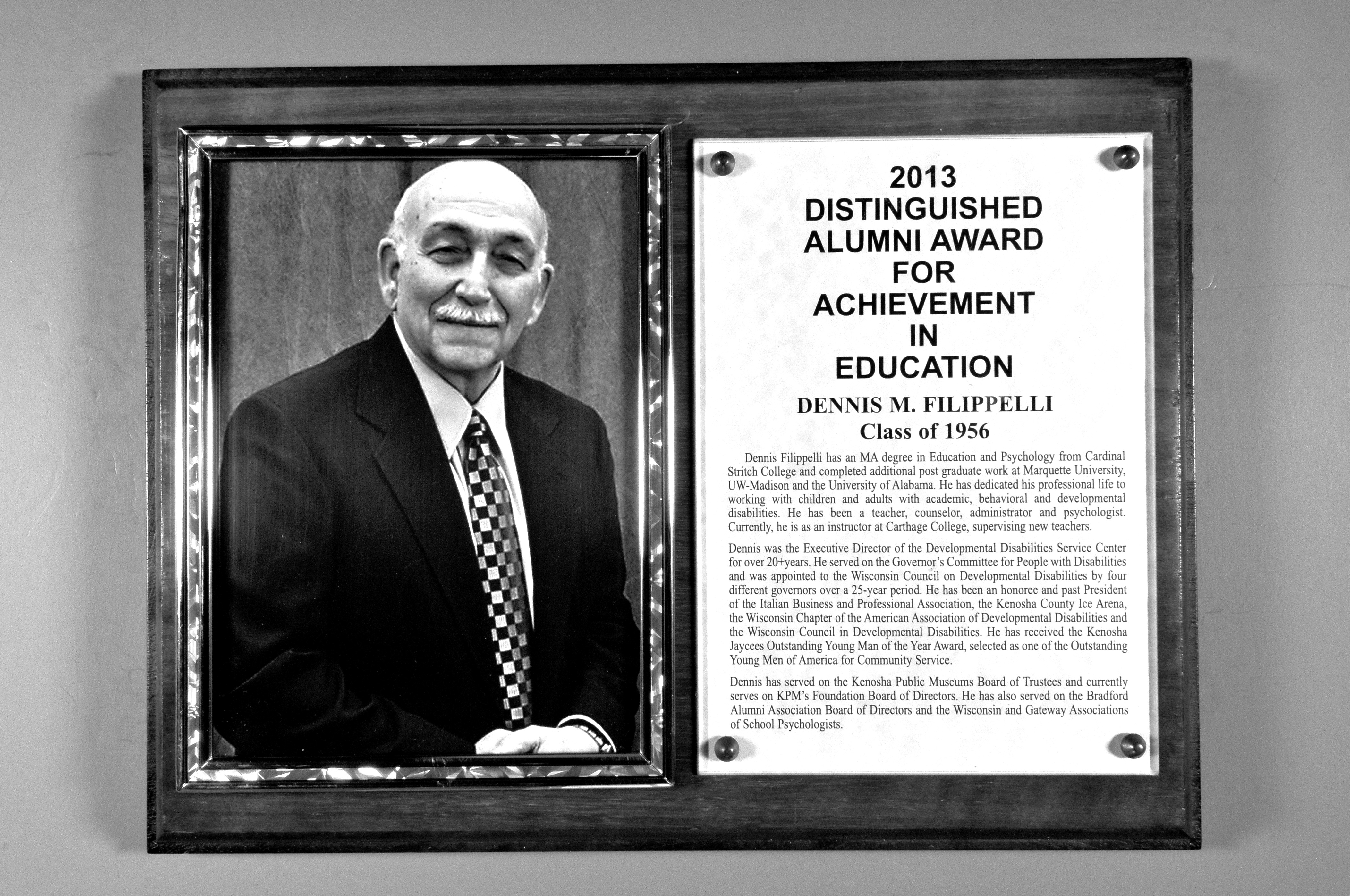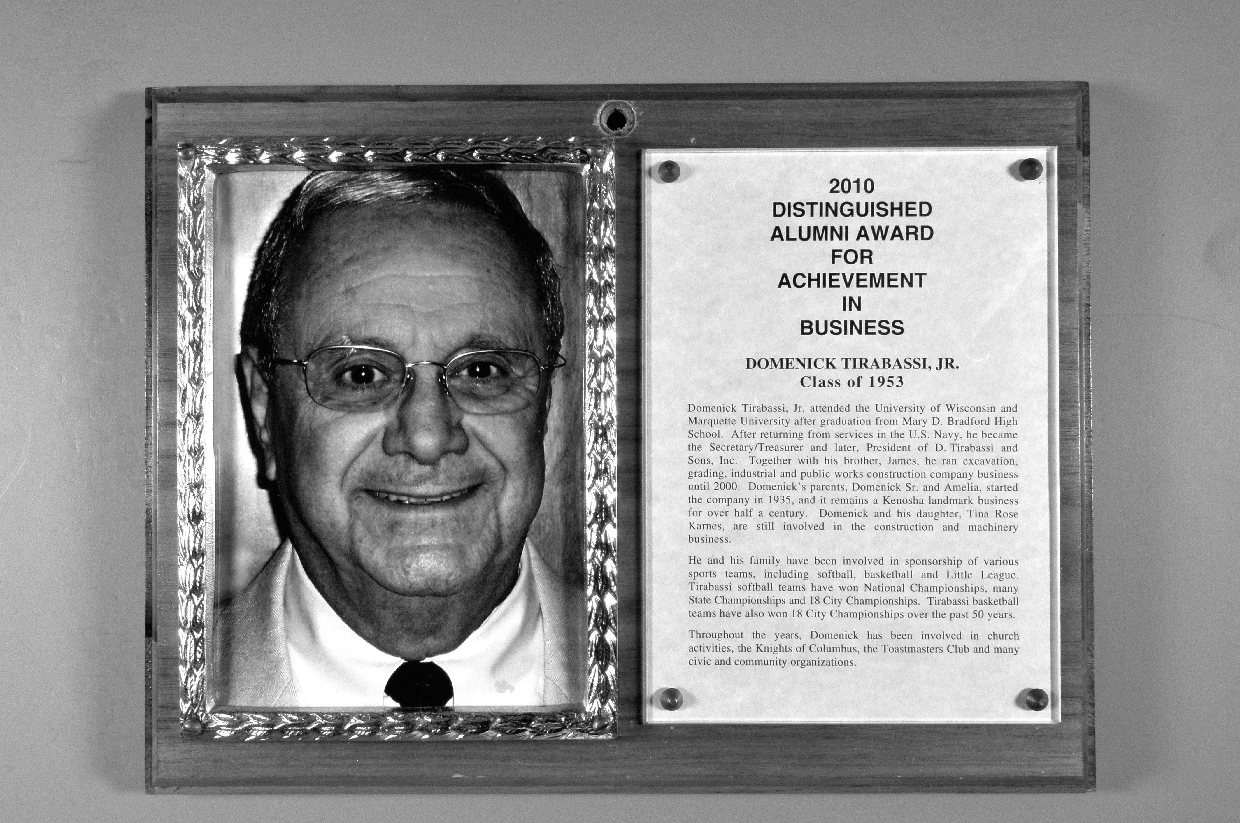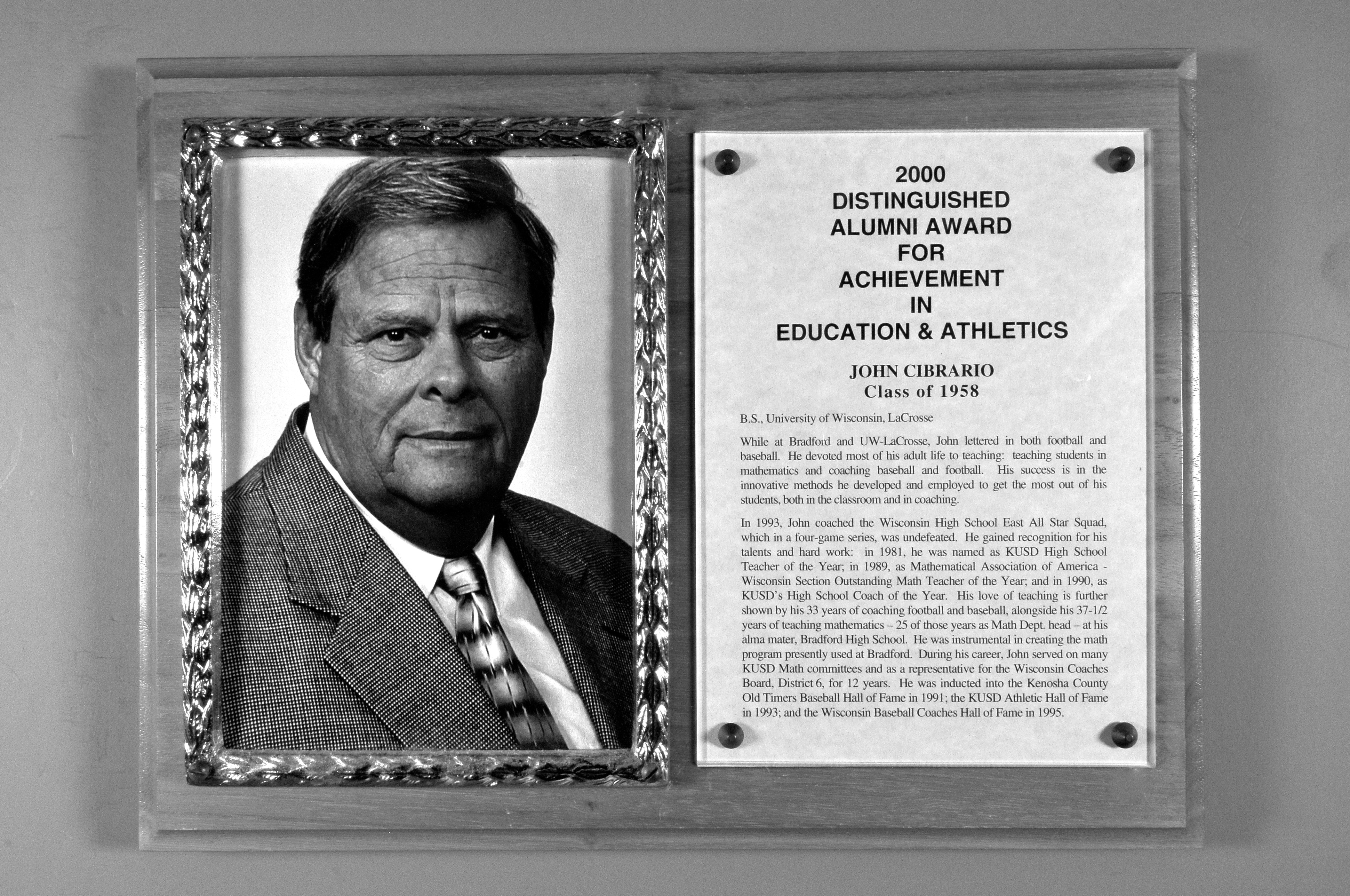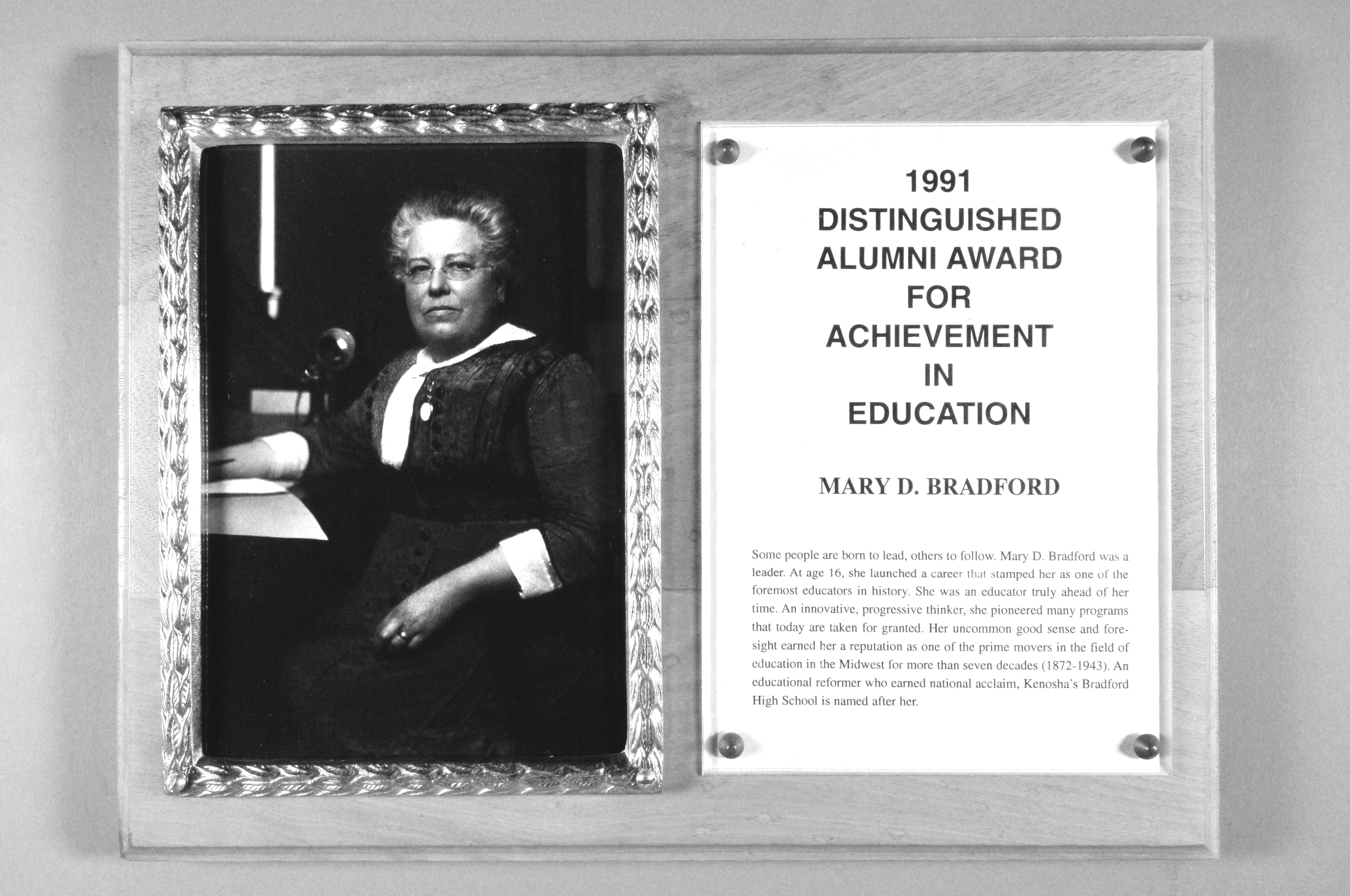 The Distinguished Alumni Award (DAA) program was established in 1989 to honor outstanding individuals who attended or graduated from Kenosha High School/Mary D. Bradford High School. That first year, 5 recipients were honored at the Annual Alumni Banquet in June. This award recognizes people from many areas of society who have contributed significantly to their profession and are positive role models for Bradford High School students.