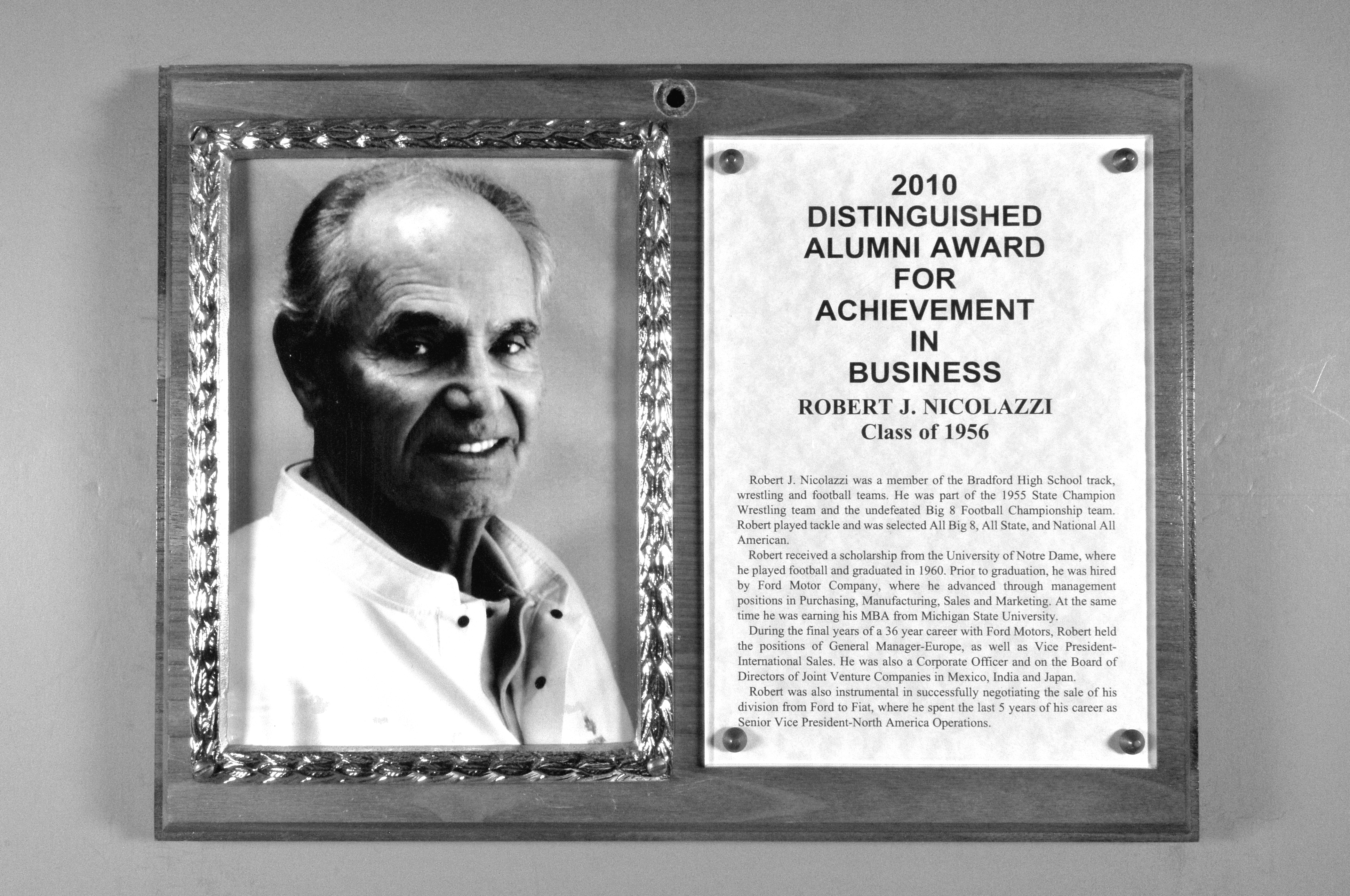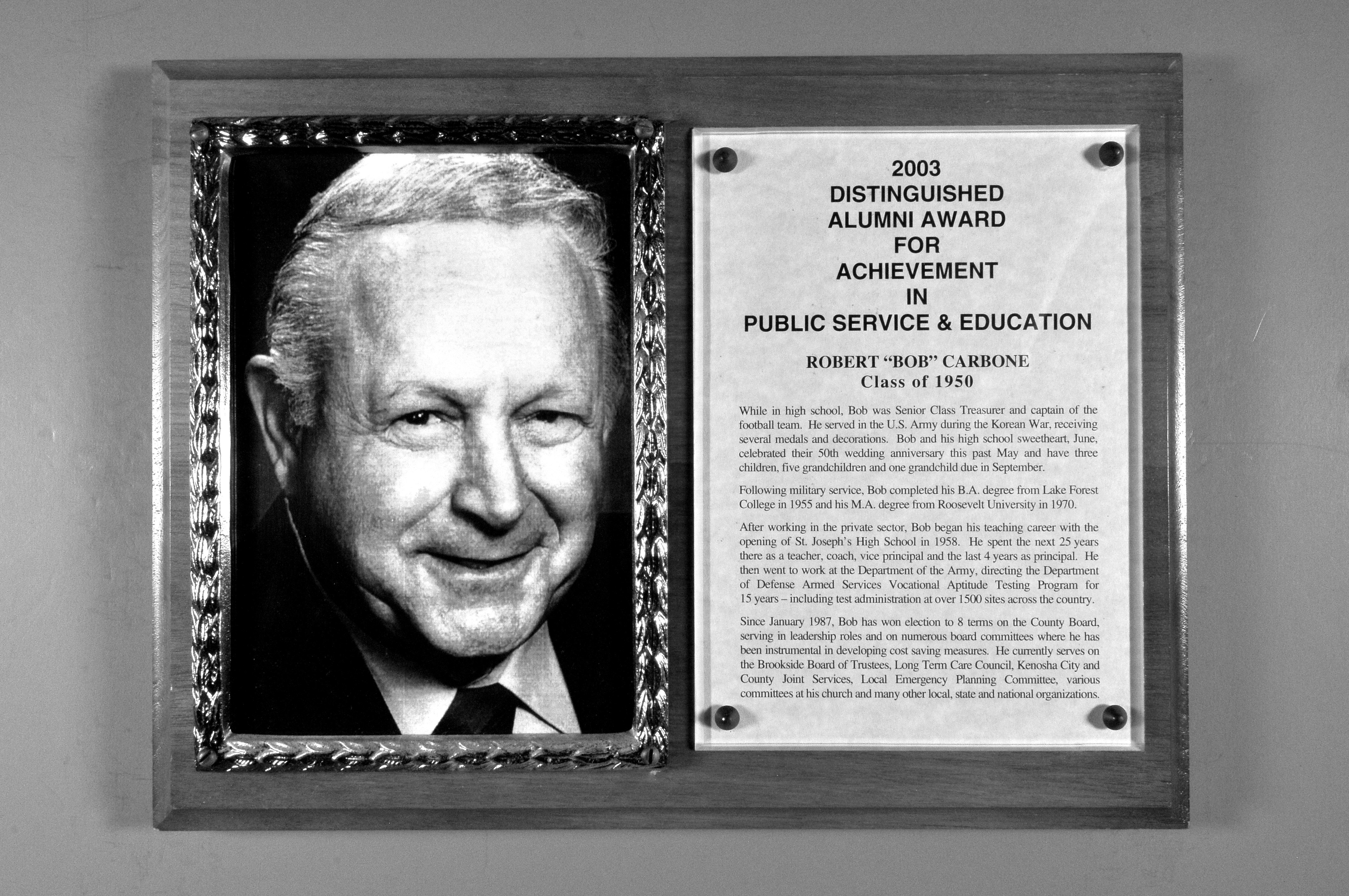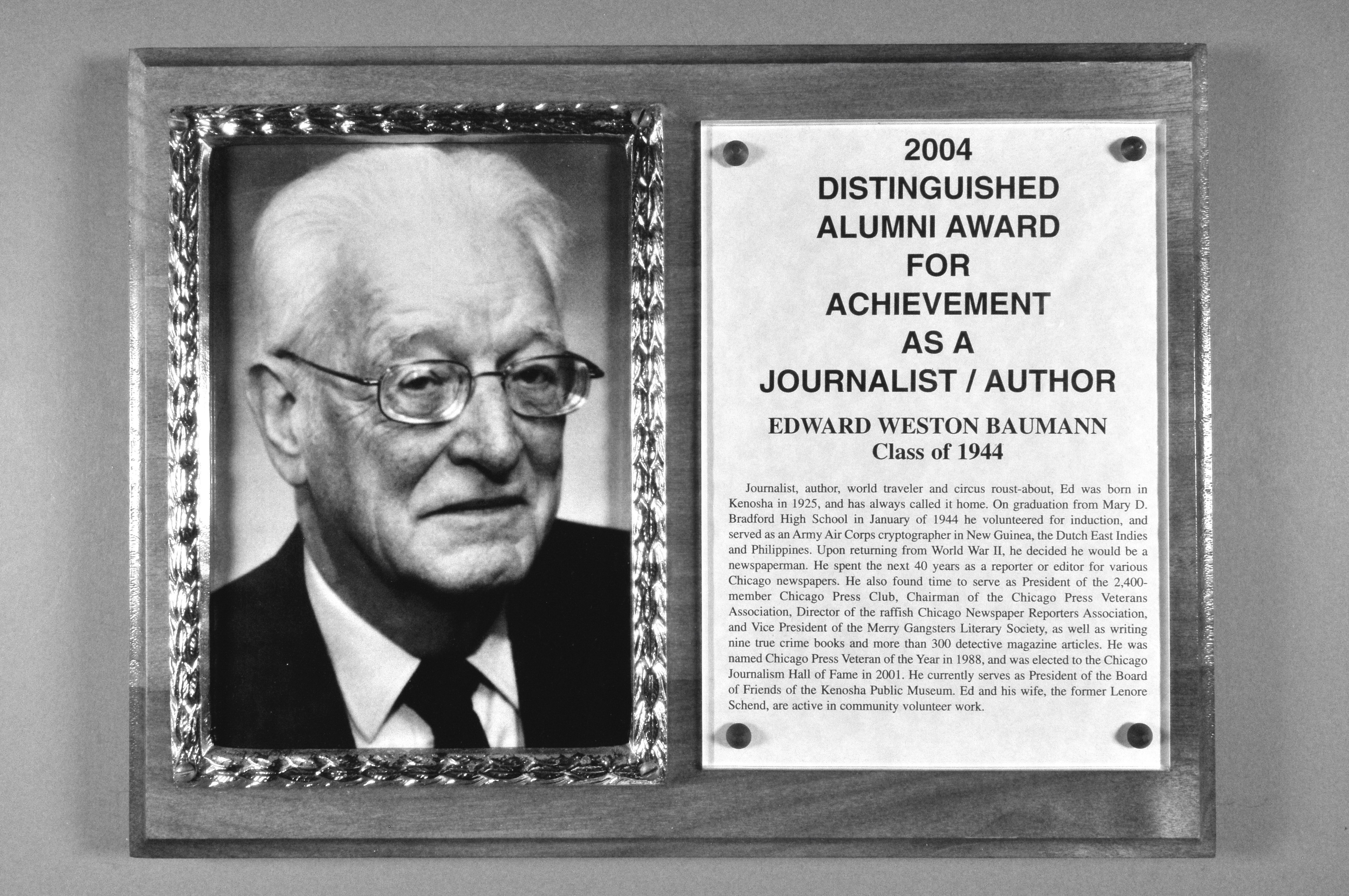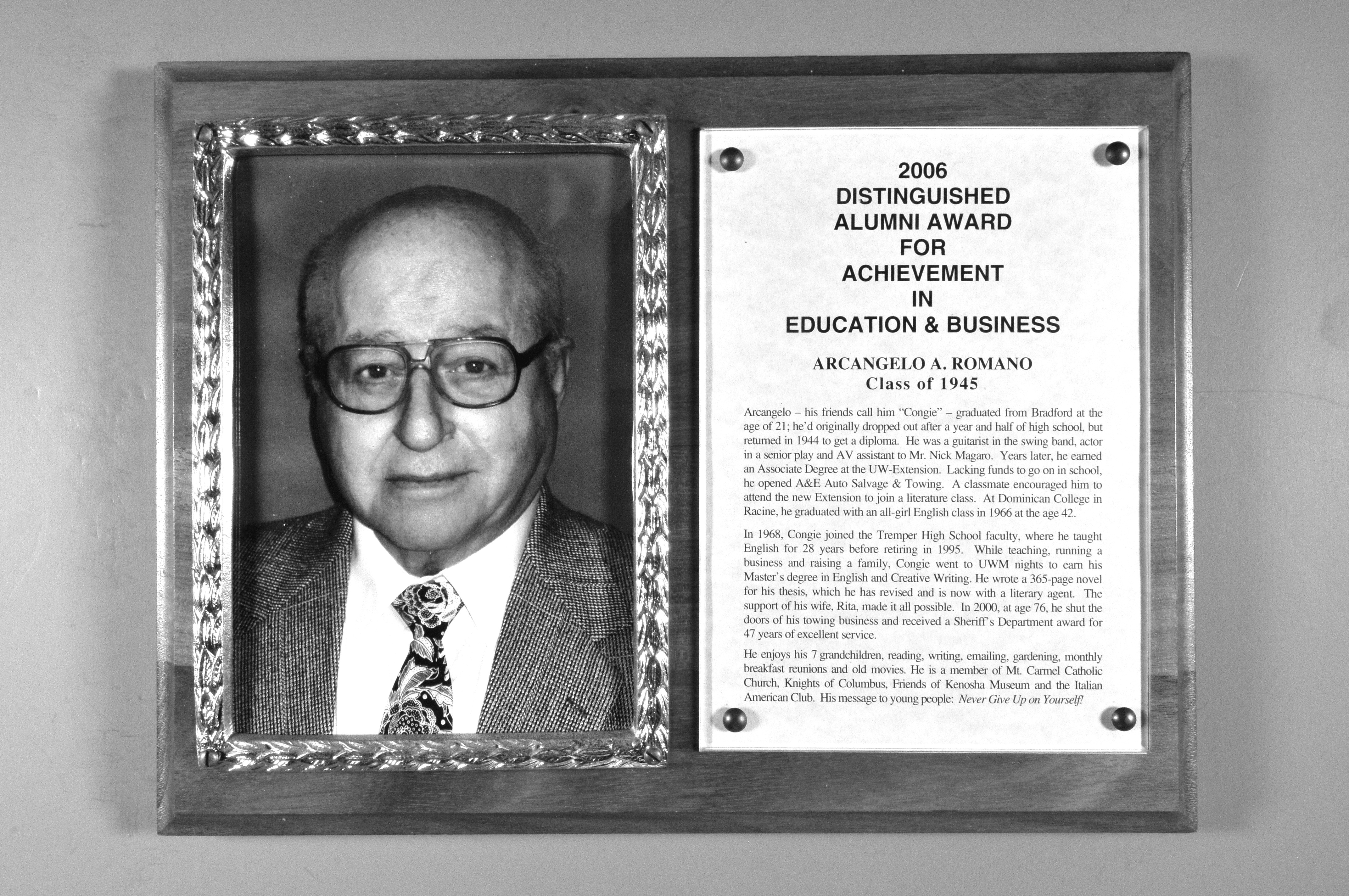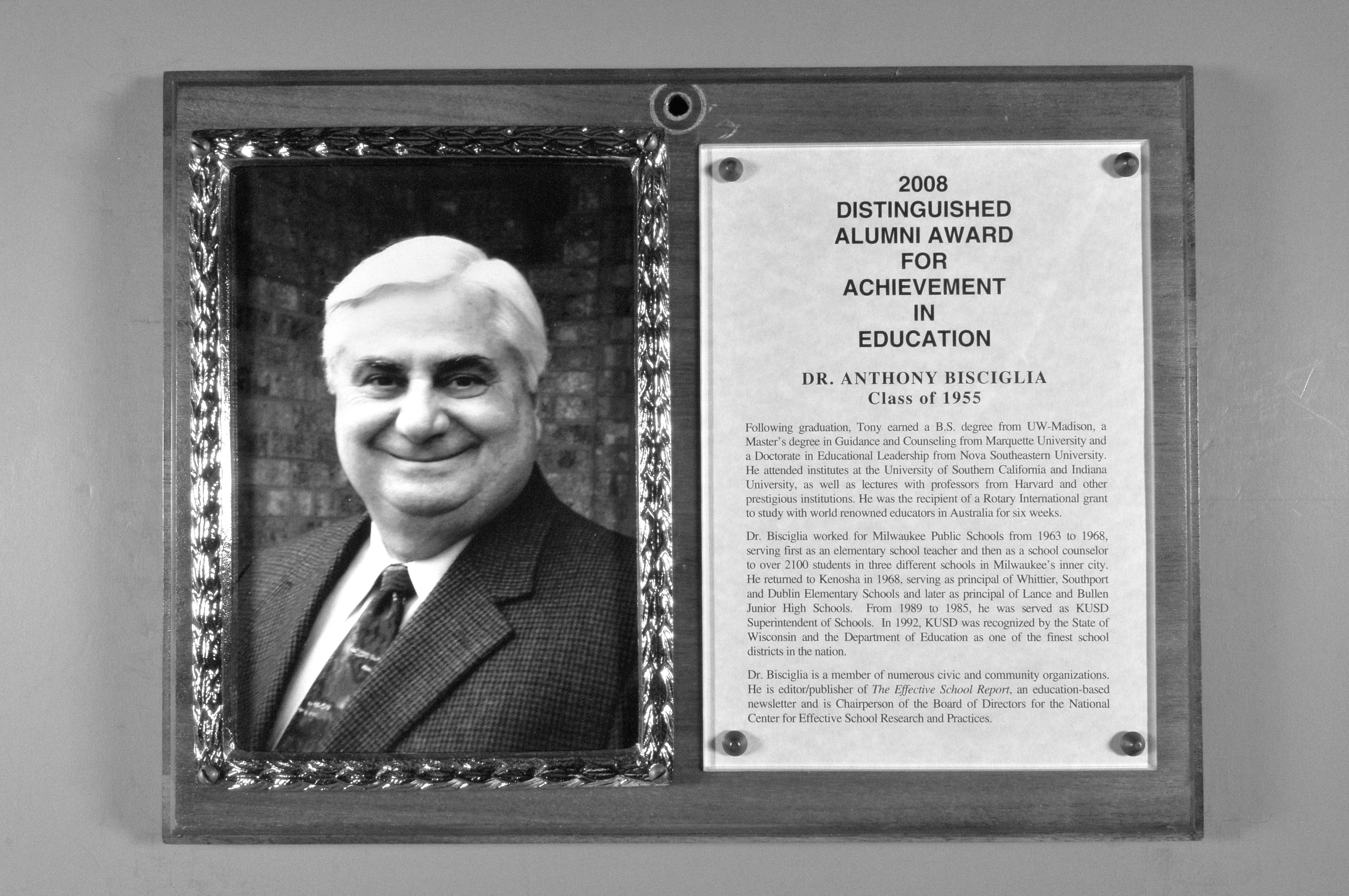 The Distinguished Alumni Award (DAA) program was established in 1989 to honor outstanding individuals who attended or graduated from Kenosha High School/Mary D. Bradford High School. That first year, 5 recipients were honored at the Annual Alumni Banquet in June. This award recognizes people from many areas of society who have contributed significantly to their profession and are positive role models for Bradford High School students.