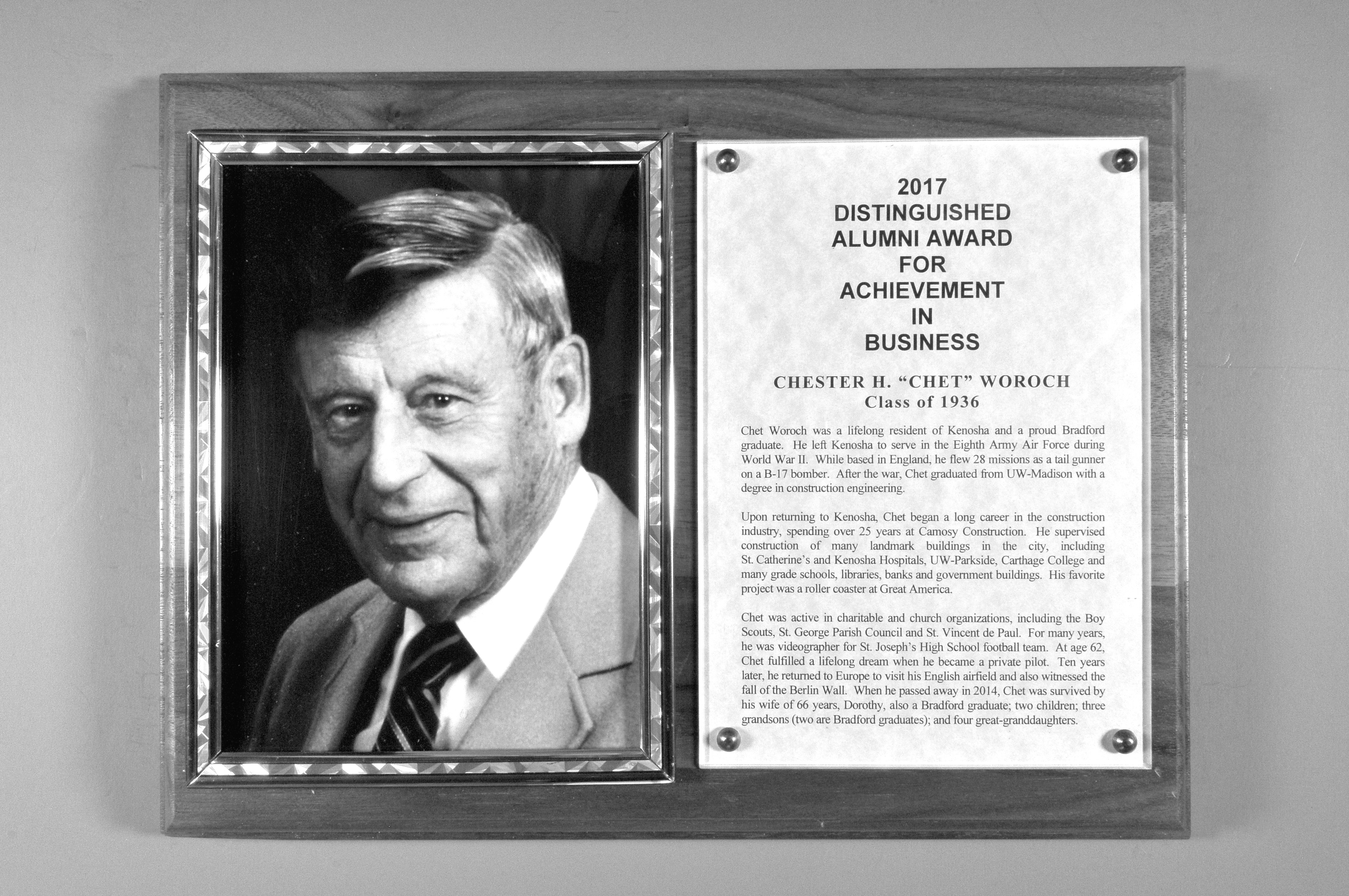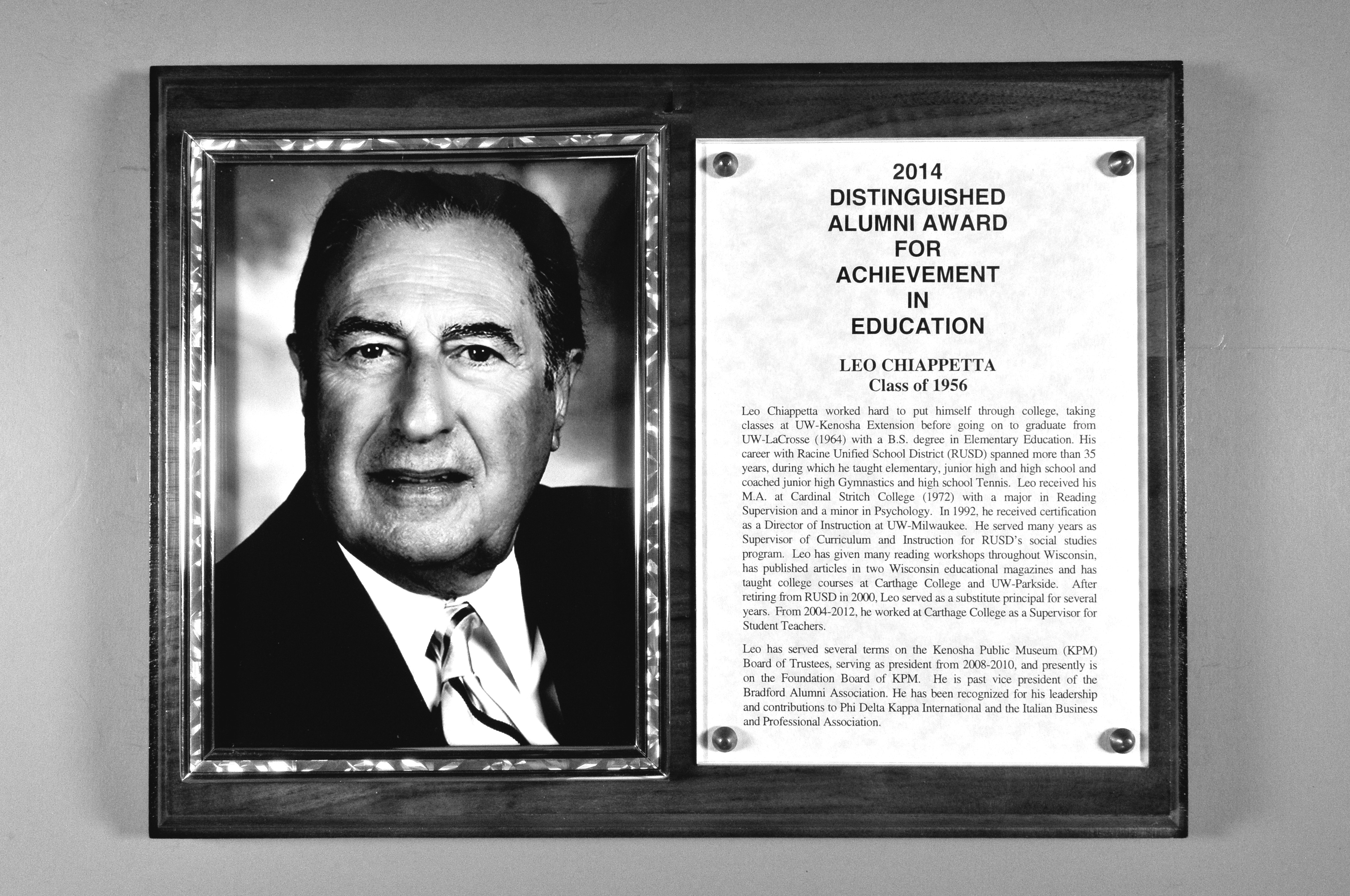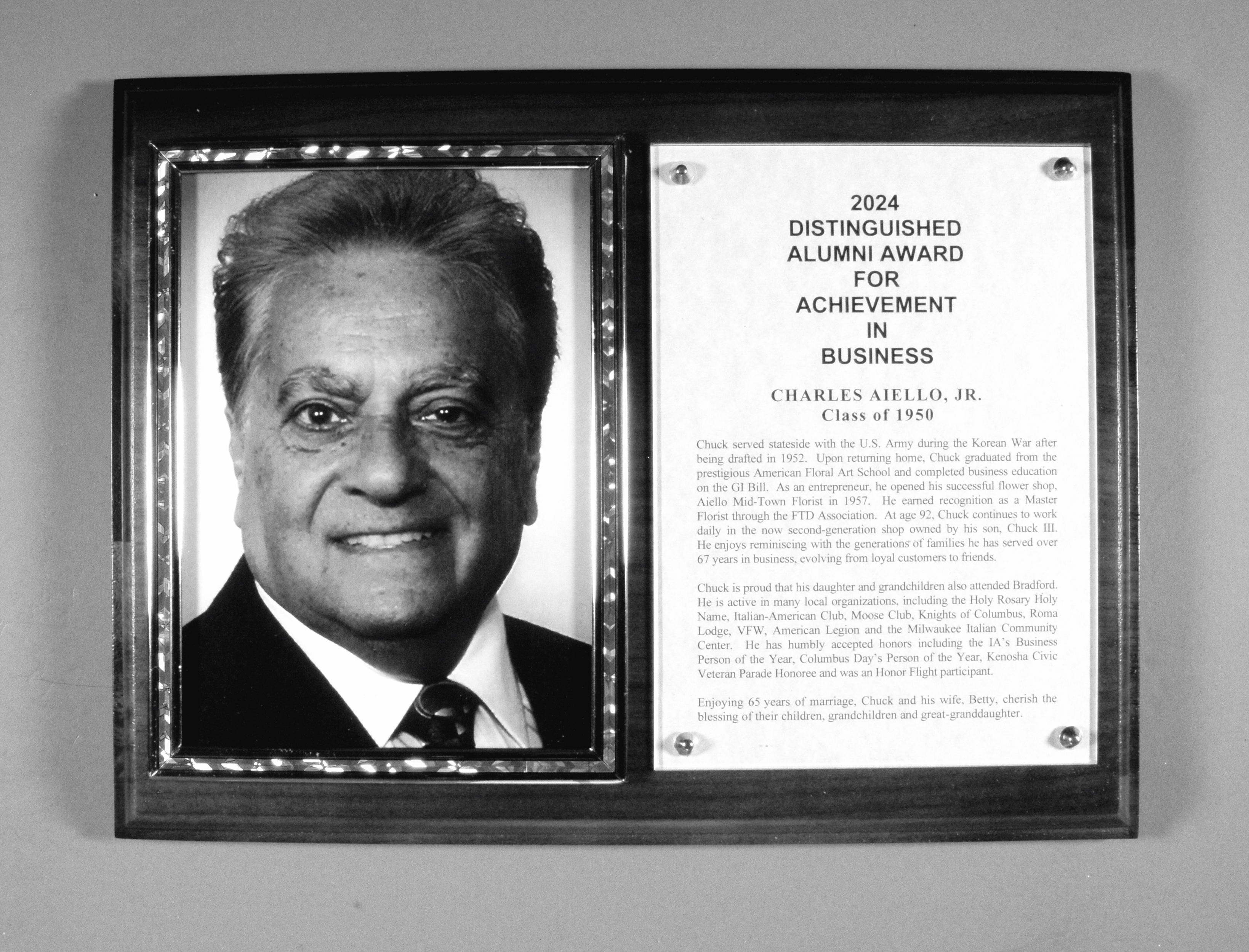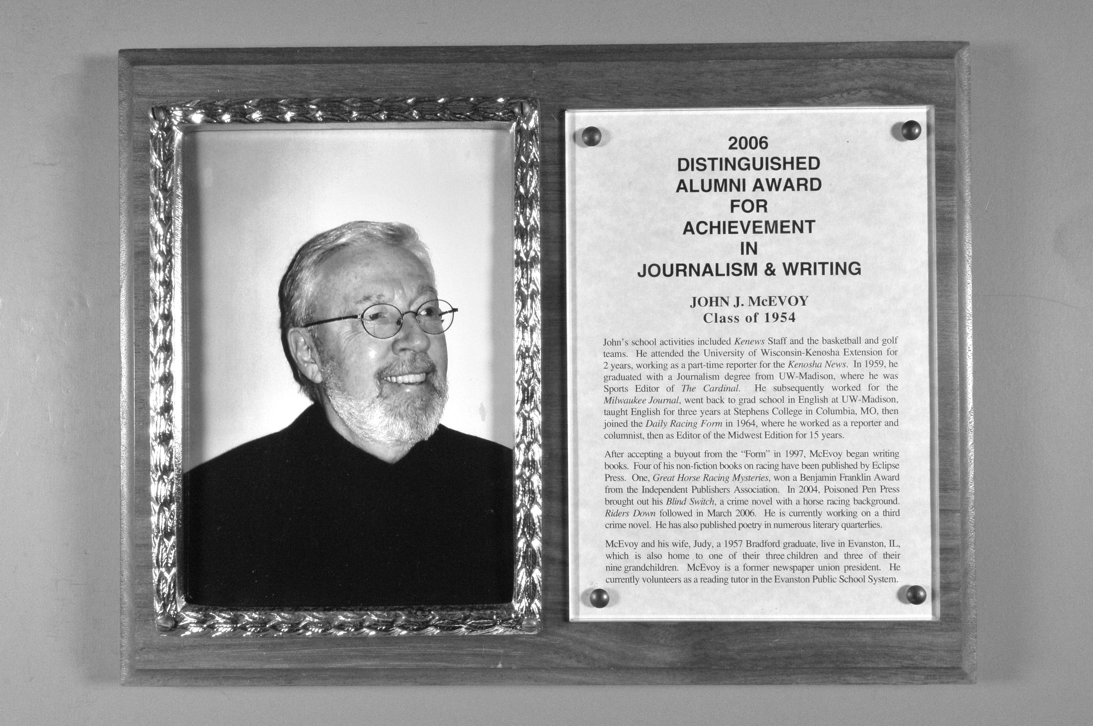 The Distinguished Alumni Award (DAA) program was established in 1989 to honor outstanding individuals who attended or graduated from Kenosha High School/Mary D. Bradford High School. That first year, 5 recipients were honored at the Annual Alumni Banquet in June. This award recognizes people from many areas of society who have contributed significantly to their profession and are positive role models for Bradford High School students.