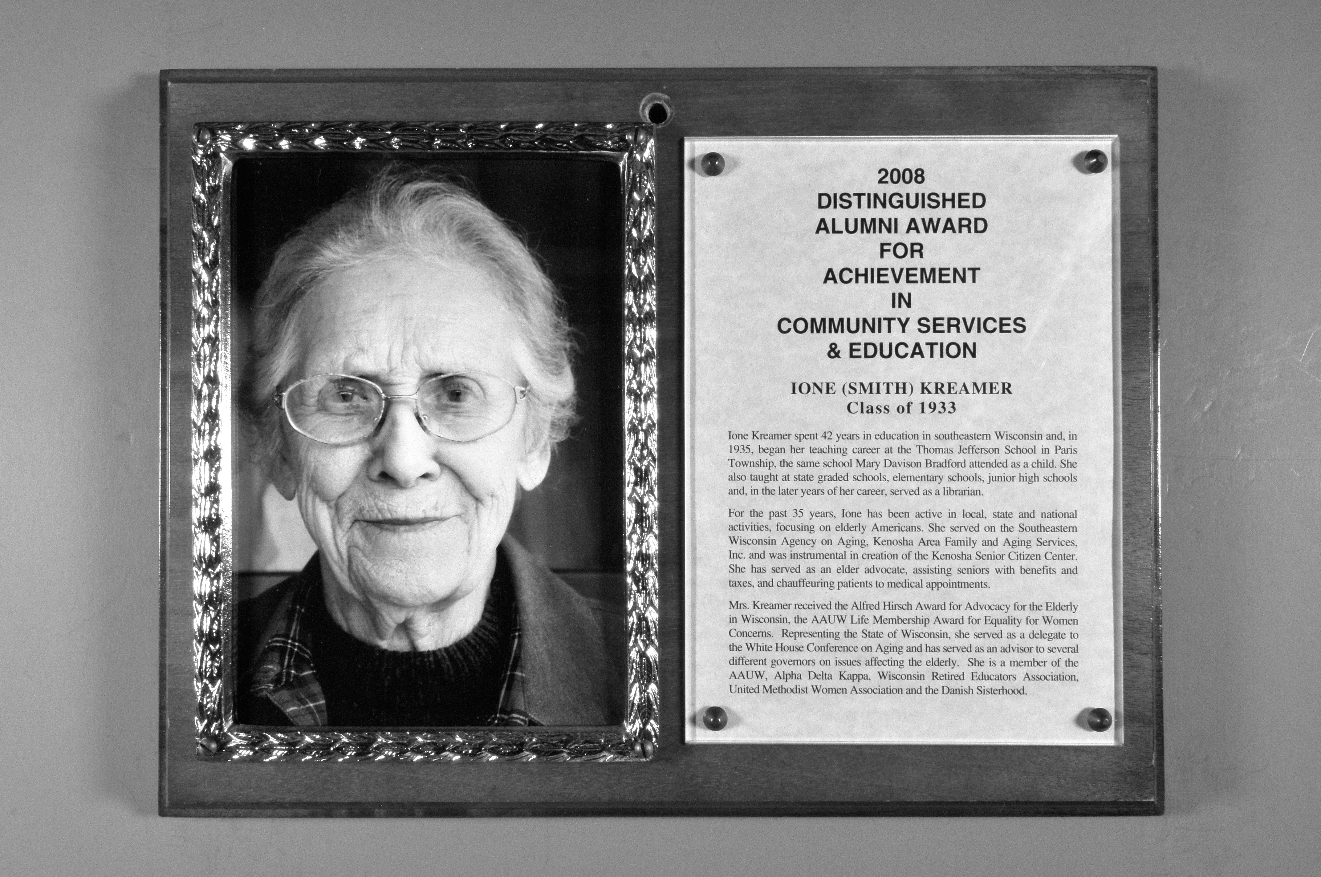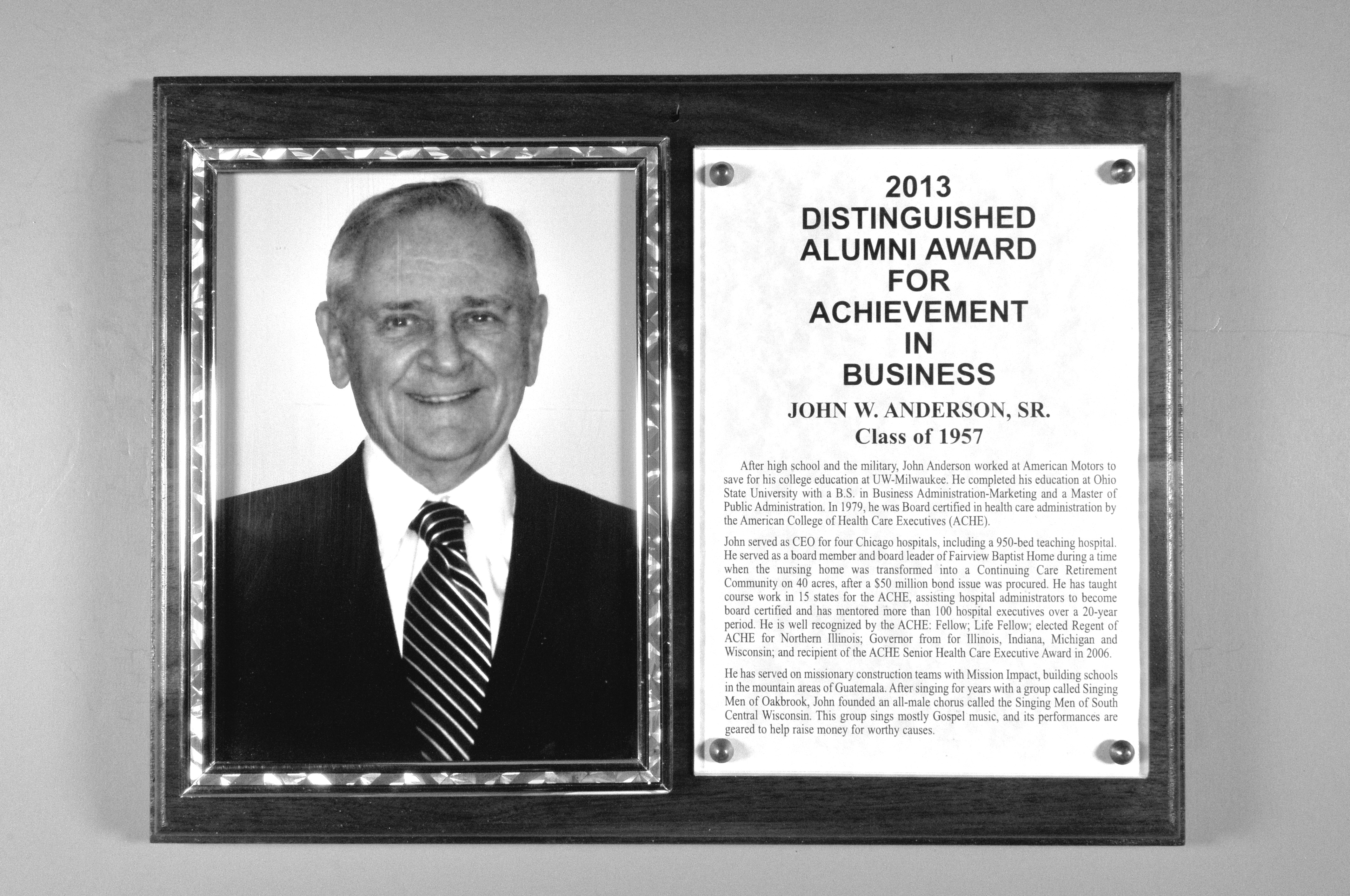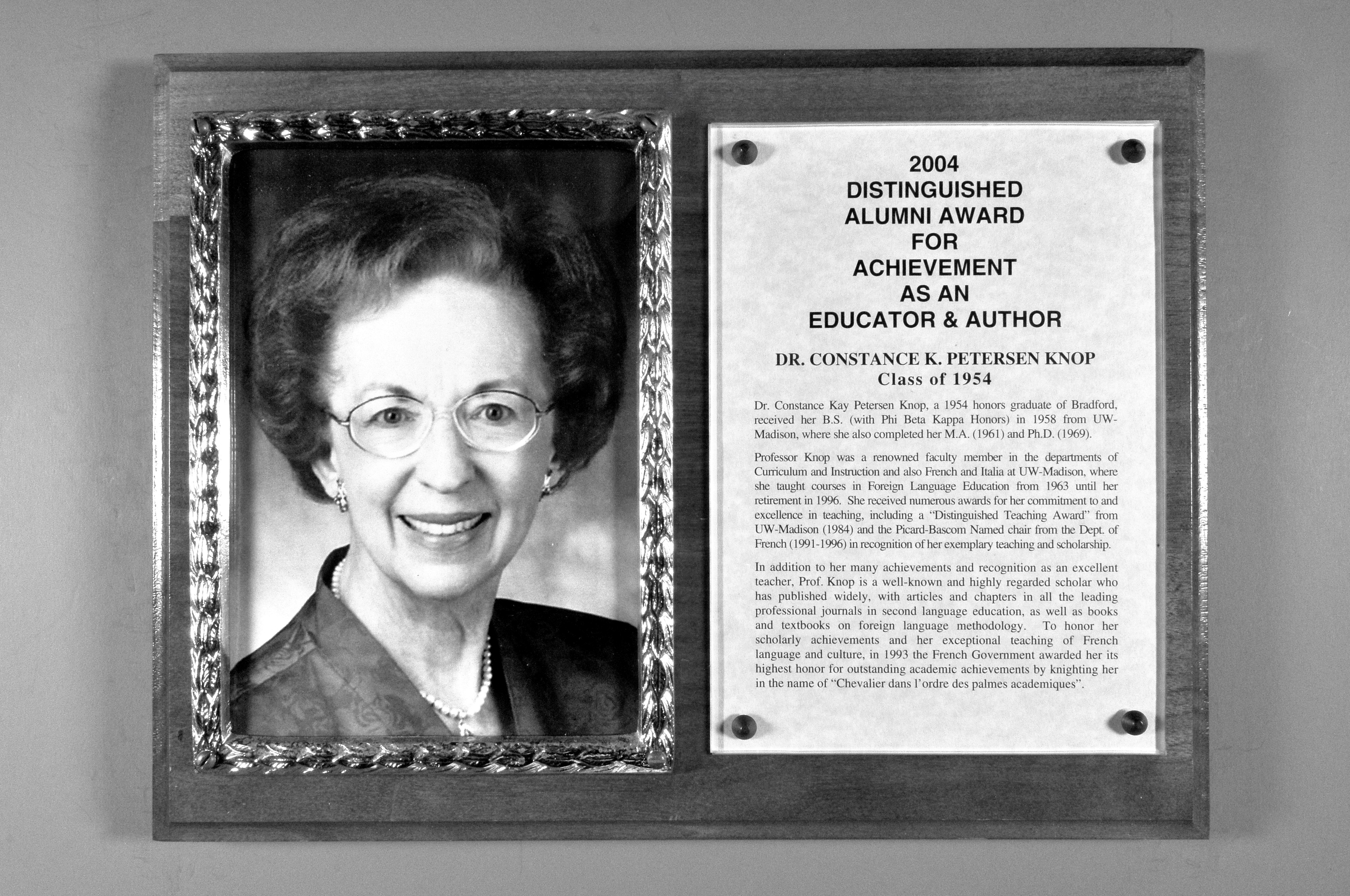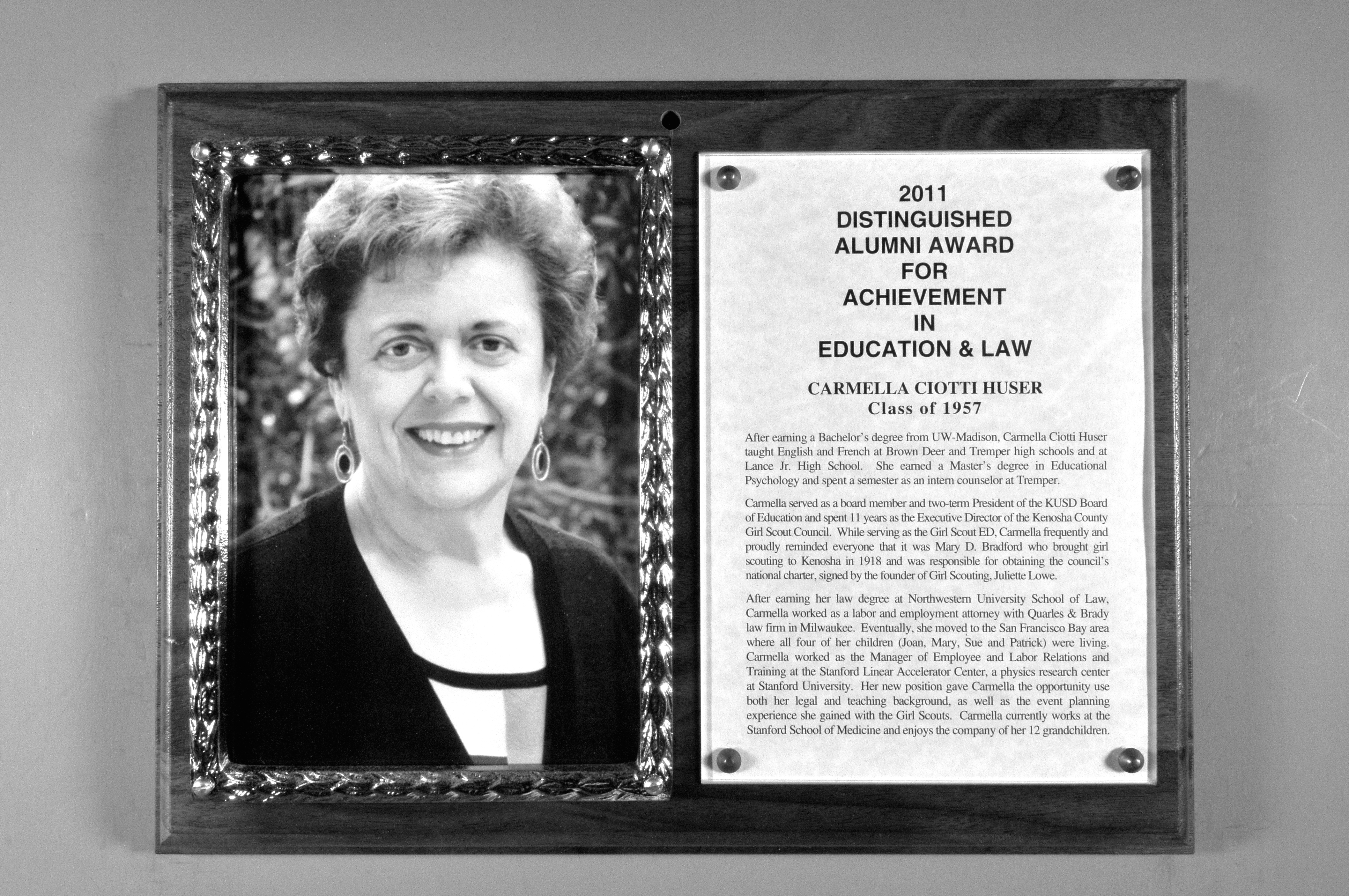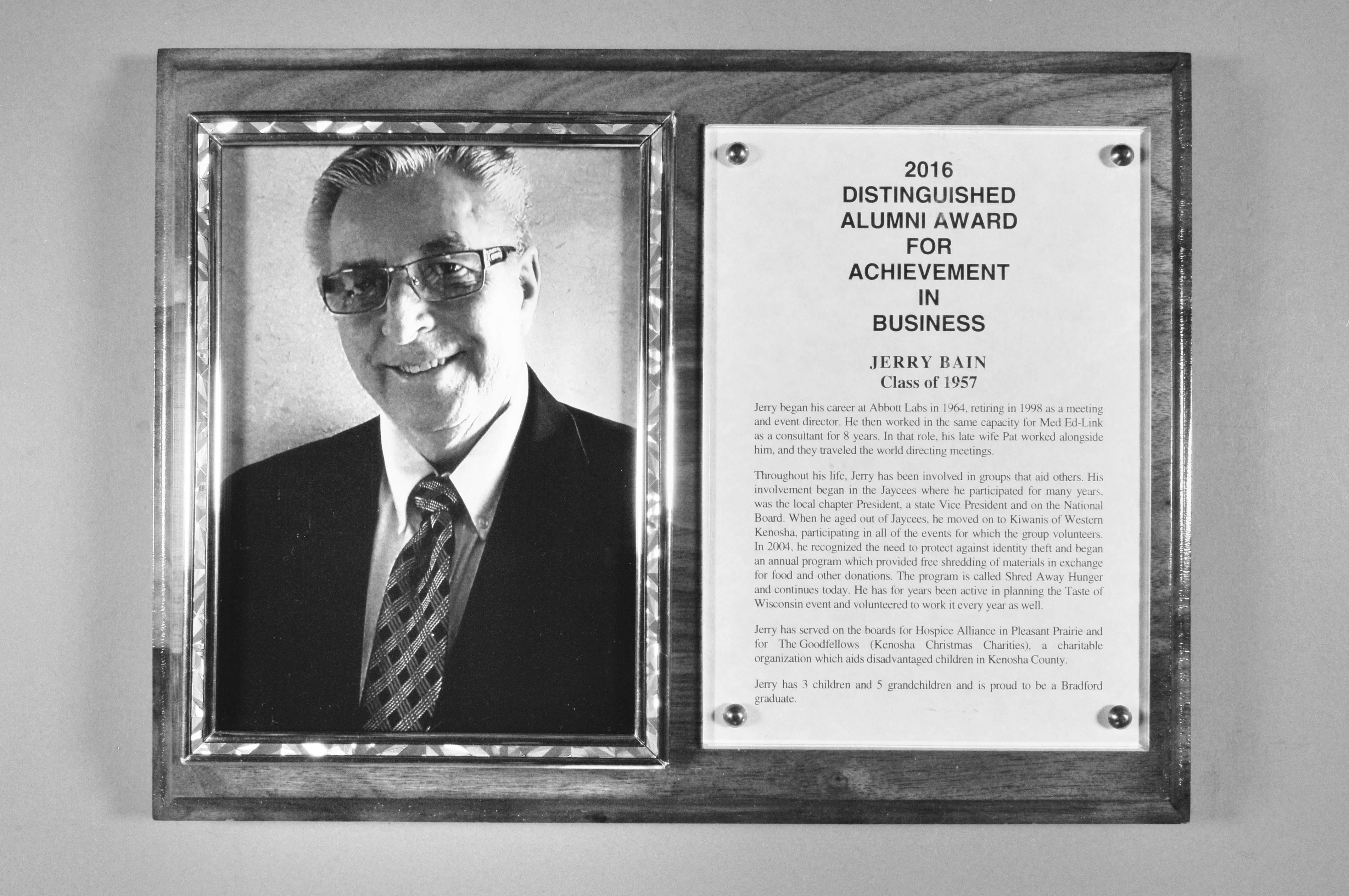 The Distinguished Alumni Award (DAA) program was established in 1989 to honor outstanding individuals who attended or graduated from Kenosha High School/Mary D. Bradford High School. That first year, 5 recipients were honored at the Annual Alumni Banquet in June. This award recognizes people from many areas of society who have contributed significantly to their profession and are positive role models for Bradford High School students.