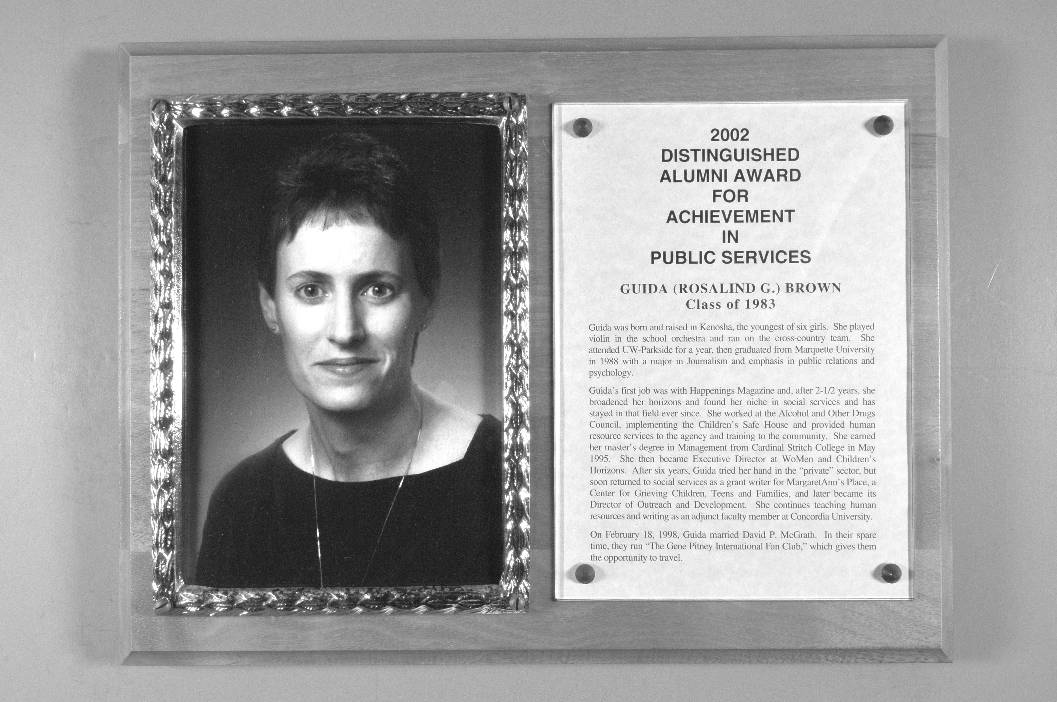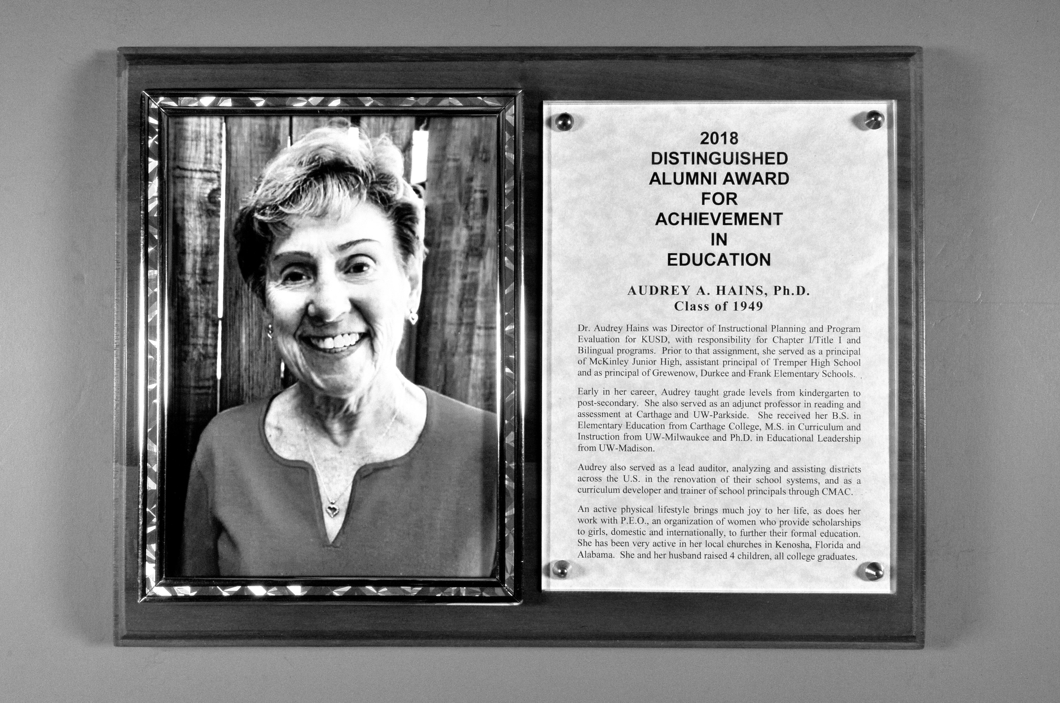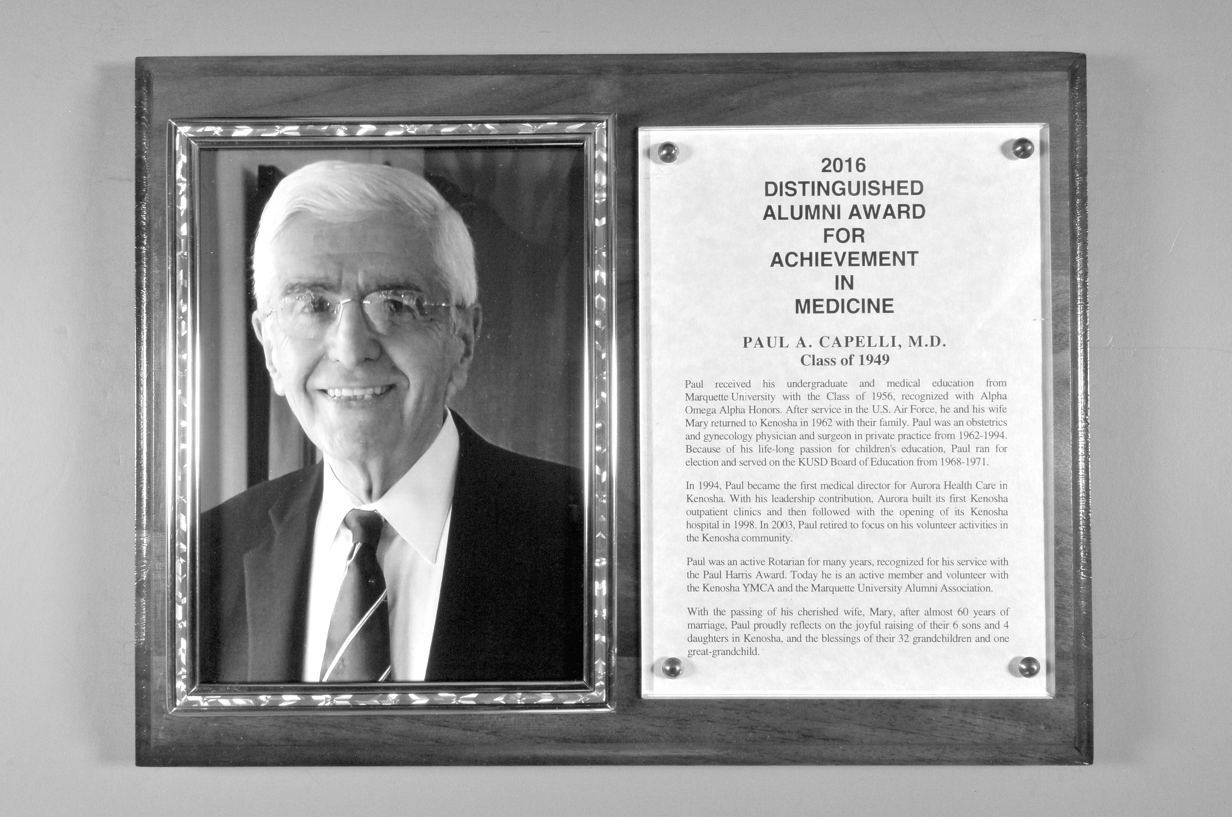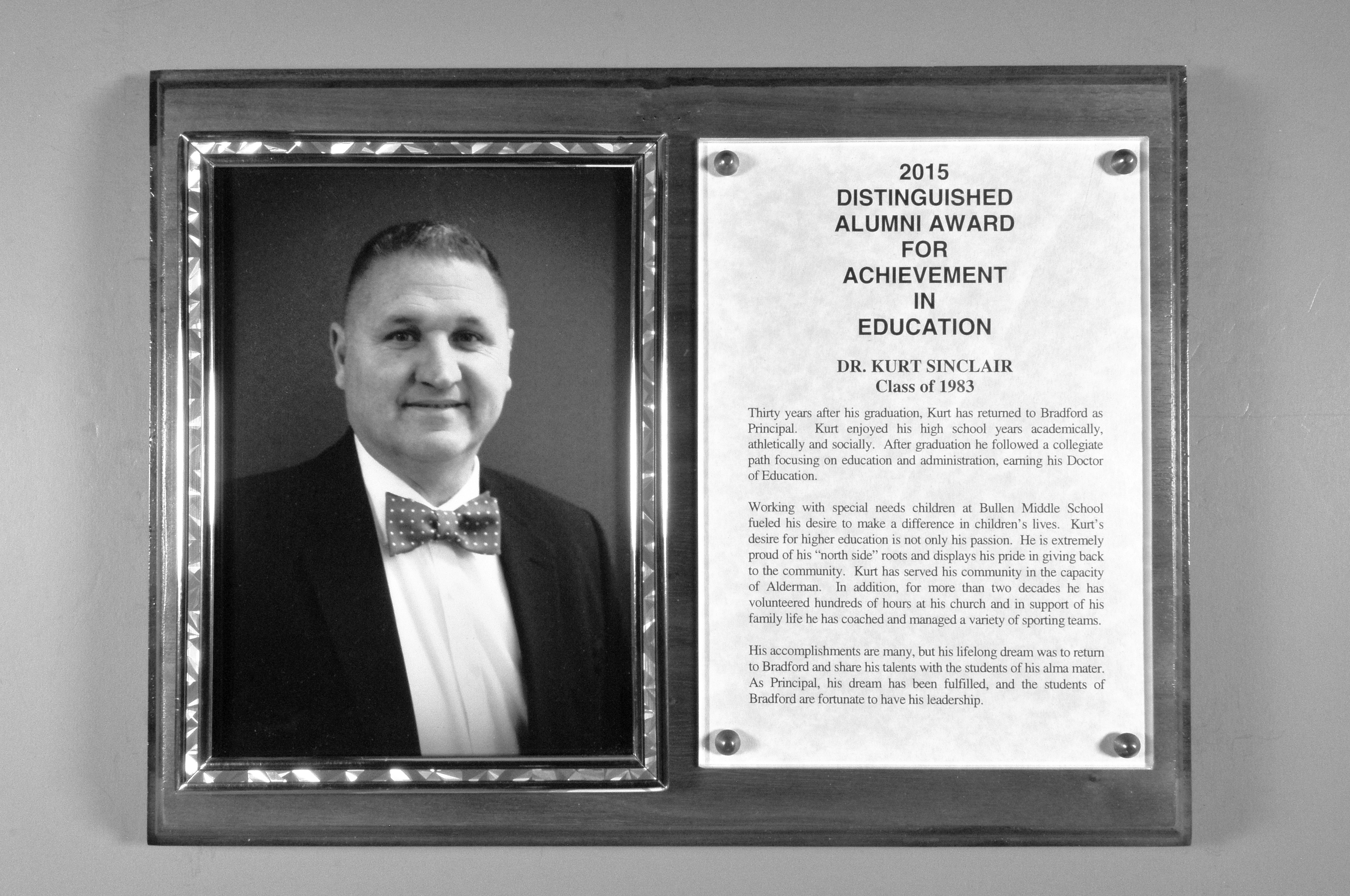 The Distinguished Alumni Award (DAA) program was established in 1989 to honor outstanding individuals who attended or graduated from Kenosha High School/Mary D. Bradford High School. That first year, 5 recipients were honored at the Annual Alumni Banquet in June. This award recognizes people from many areas of society who have contributed significantly to their profession and are positive role models for Bradford High School students.