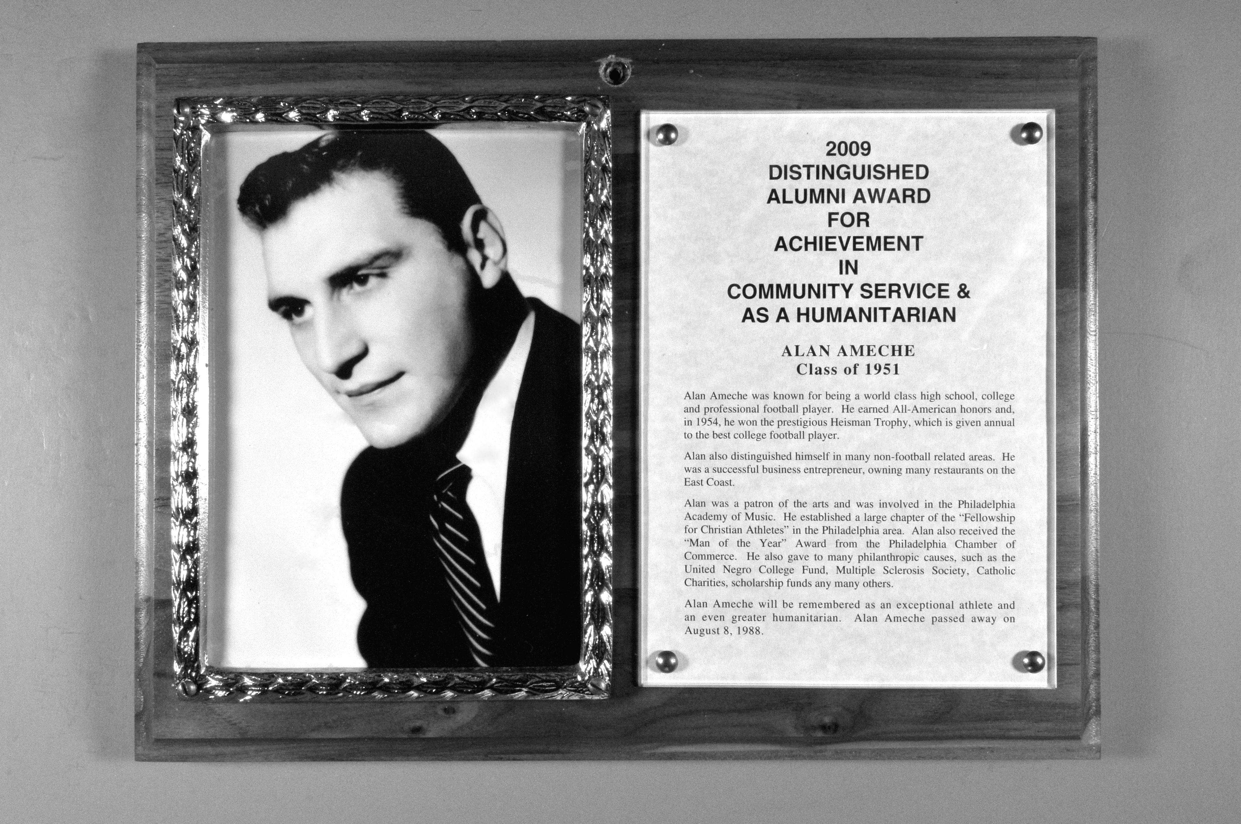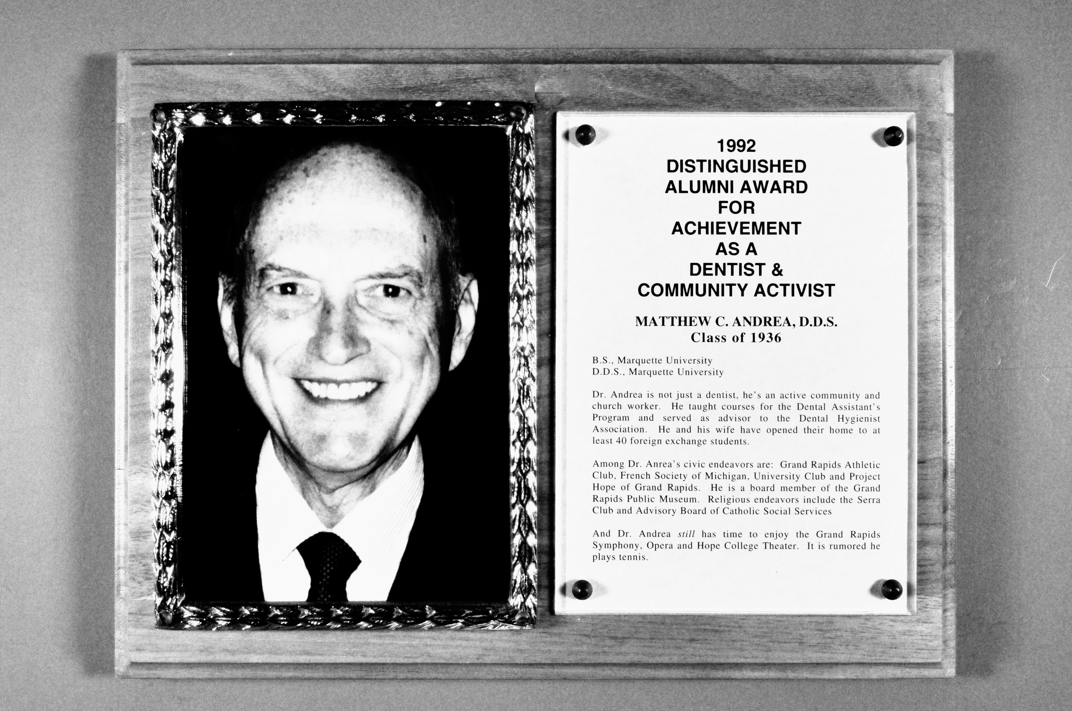 As a part of the restoration project, we have added a photo of each DAA honorees' plaque to our website! To view a photo, simply click on the link for the specific DAA honoree's name and class year, and the photo will be displayed. If you need to enlarge the image to view the honoree's bio, simply click on it and scroll as needed, left/right or up/down.